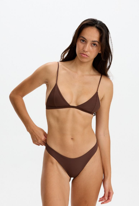 This top features a middle seam triangle panel, a fixed single strap top with a band to offer stability. A great basic top that offers stability while still minimizing tan lines.