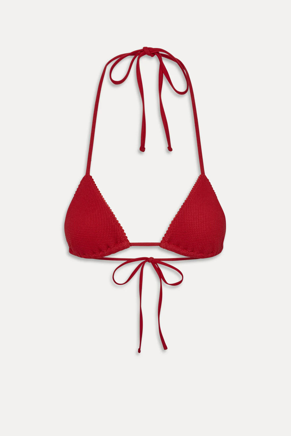 Our most tried and true triangle bikini top is here to stay. Nick features a new thermal swim fabric and adjustable string ties that wrap around your neck and back for a personalized fit. Carry this bikini top in your bag so you're ready to tan when the sun comes out.
