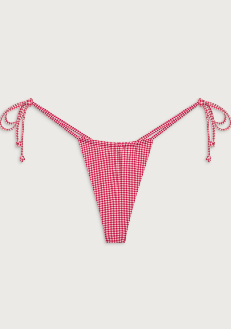 Sexy and slimming with a flirty ruched detail and the Tia bikini bottom takes the ultimate skimpy silhouette to a new level. This bikini bottom is designed in our signature SoftSwim fabric. If you're looking for the ultimate beach set, you've found it with the Tia bottom and NICK TOP in LADYBUG GINGHAM